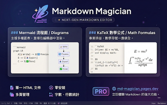 Markdown Magician är ett kraftfullt tillägg för Chrome som erbjuder användare möjligheten att redigera Markdown-dokument direkt i webbläsaren. Med funktioner som liveförhandsvisning, stöd för Mermaid-diagram och KaTeX-matematik, ger detta verktyg en smidig och effektiv arbetsmiljö. Användare kan enkelt växla mellan att redigera och förhandsgranska i delade eller fristående lägen, vilket gör det enkelt att hantera flera dokument samtidigt.